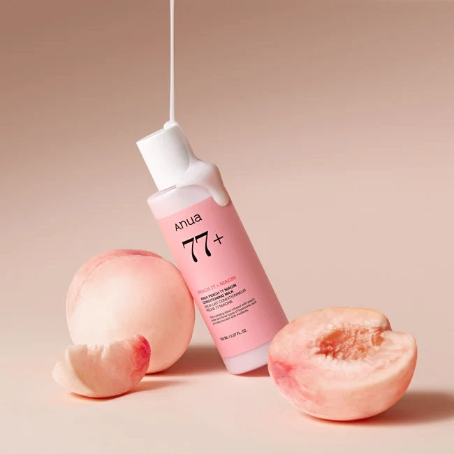 Anua Peach 77 Niacin Conditioning Milk Lotion eliminates dullness, softens rough patches, moisturizes, smooths texture. It gives a healthy glow and prevents pigmentation. It has a weightless milk texture, absorbs quickly, strengthens the moisture barrier and prevents dryness.